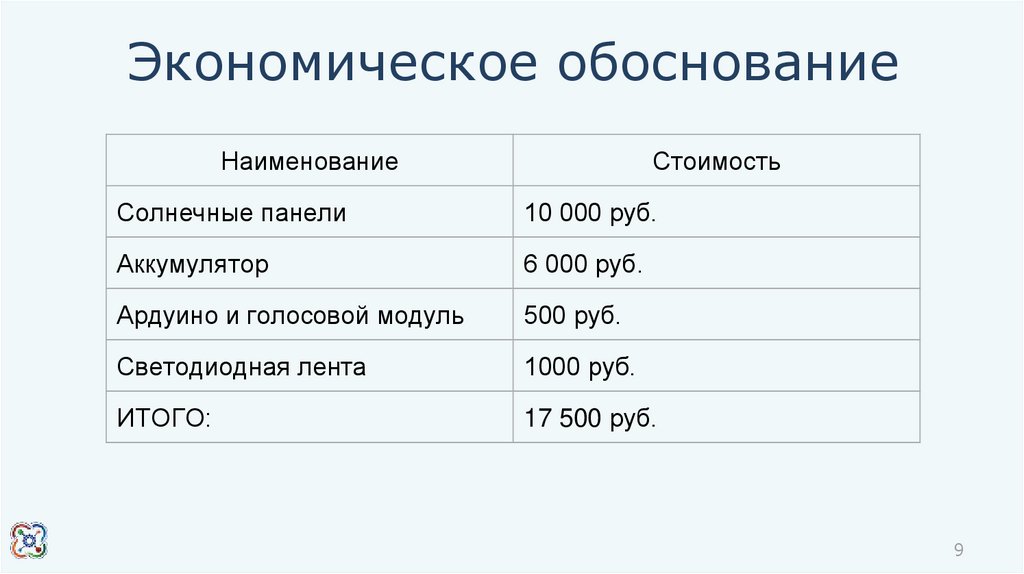 Экономическое обоснованиеНаименование