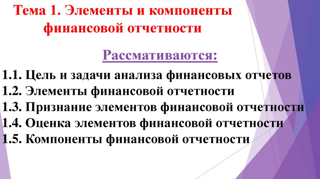Тема 1. Элементы и компонентыфинансовой отчетности