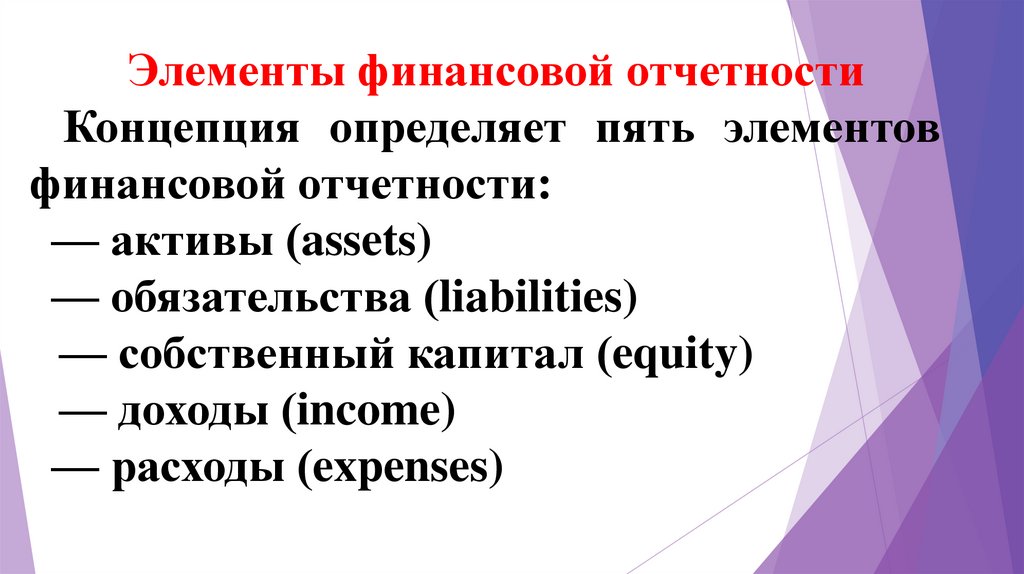 Элементы финансовой отчетностиКонцепция определяет пять элементов
