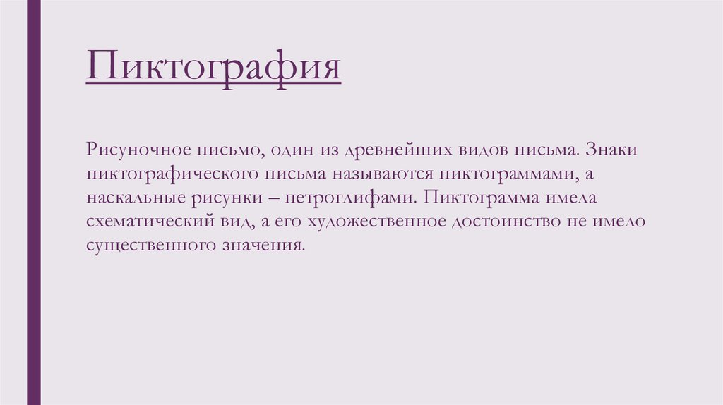 ПиктографияРисуночное письмо, один из древнейших видов письма. Знаки