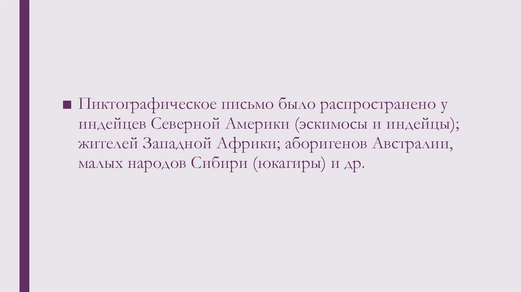 ■ Пиктографическое письмо было распространено уиндейцев Северной Америки (эскимосы и индейцы);
