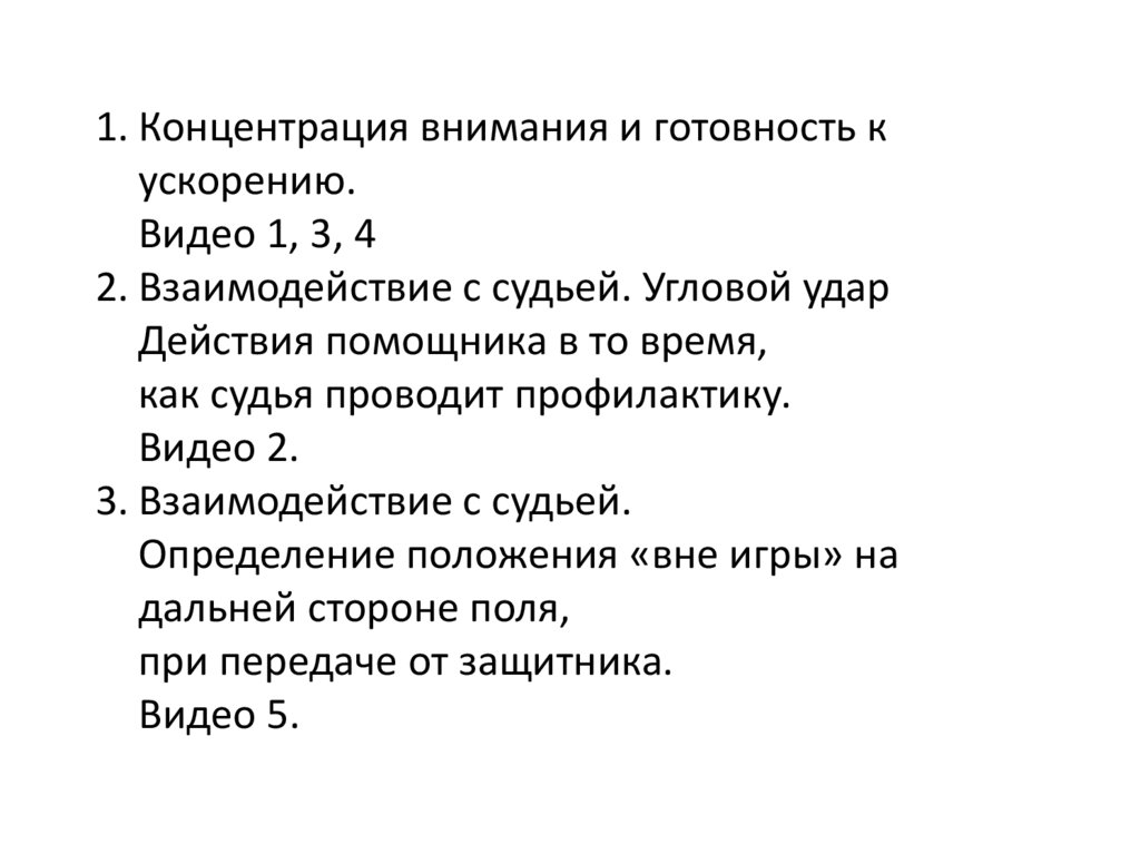 1. Концентрация внимания и готовность кускорению.