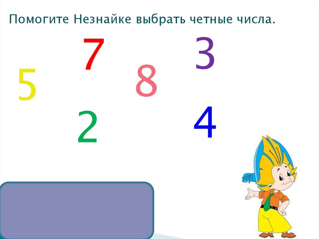 Помогите Незнайке выбрать четные числа.