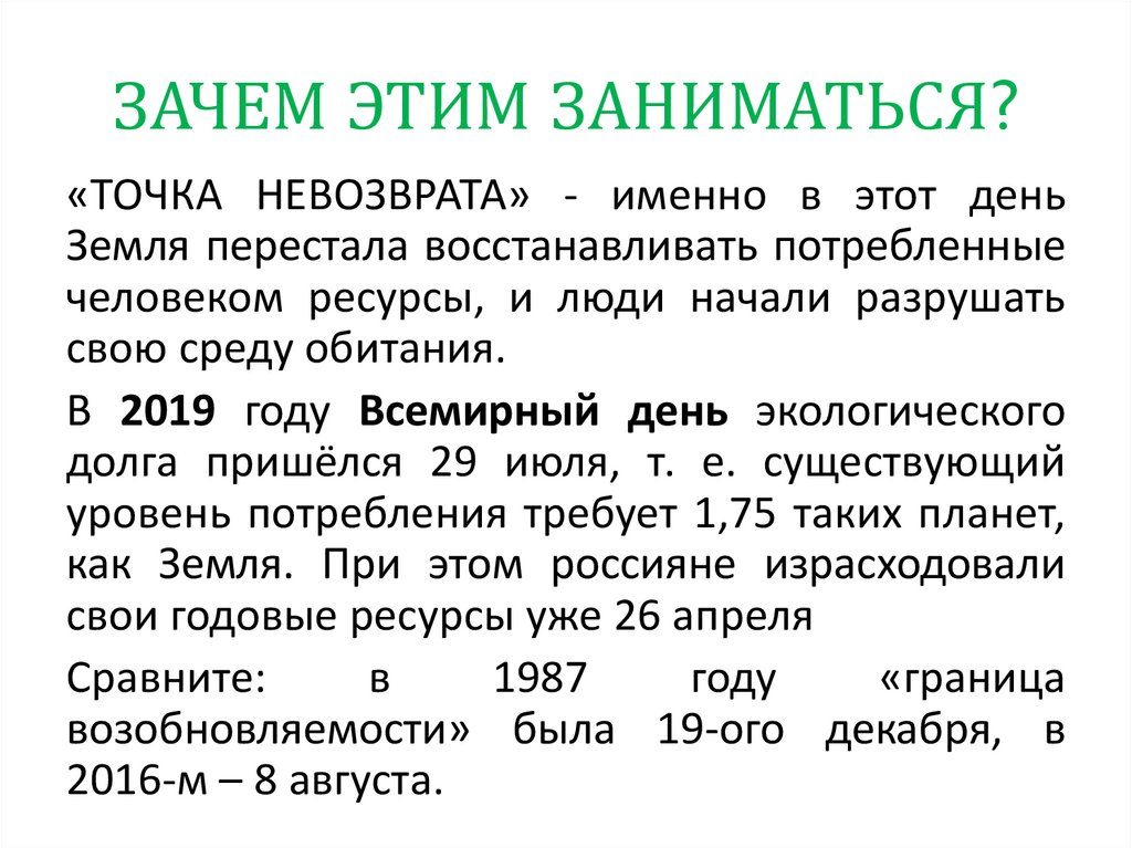 ЗАЧЕМ ЭТИМ ЗАНИМАТЬСЯ?«ТОЧКА НЕВОЗВРАТА» - именно в этот день