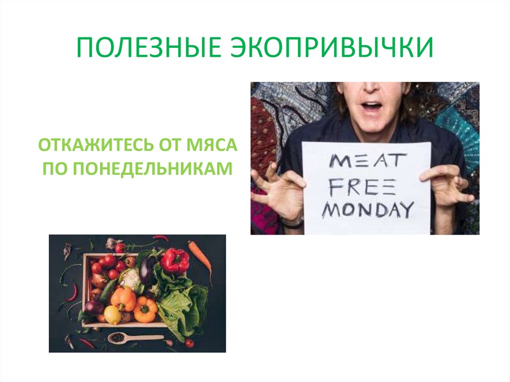 ПОЛЕЗНЫЕ ЭКОПРИВЫЧКИОТКАЖИТЕСЬ ОТ МЯСА