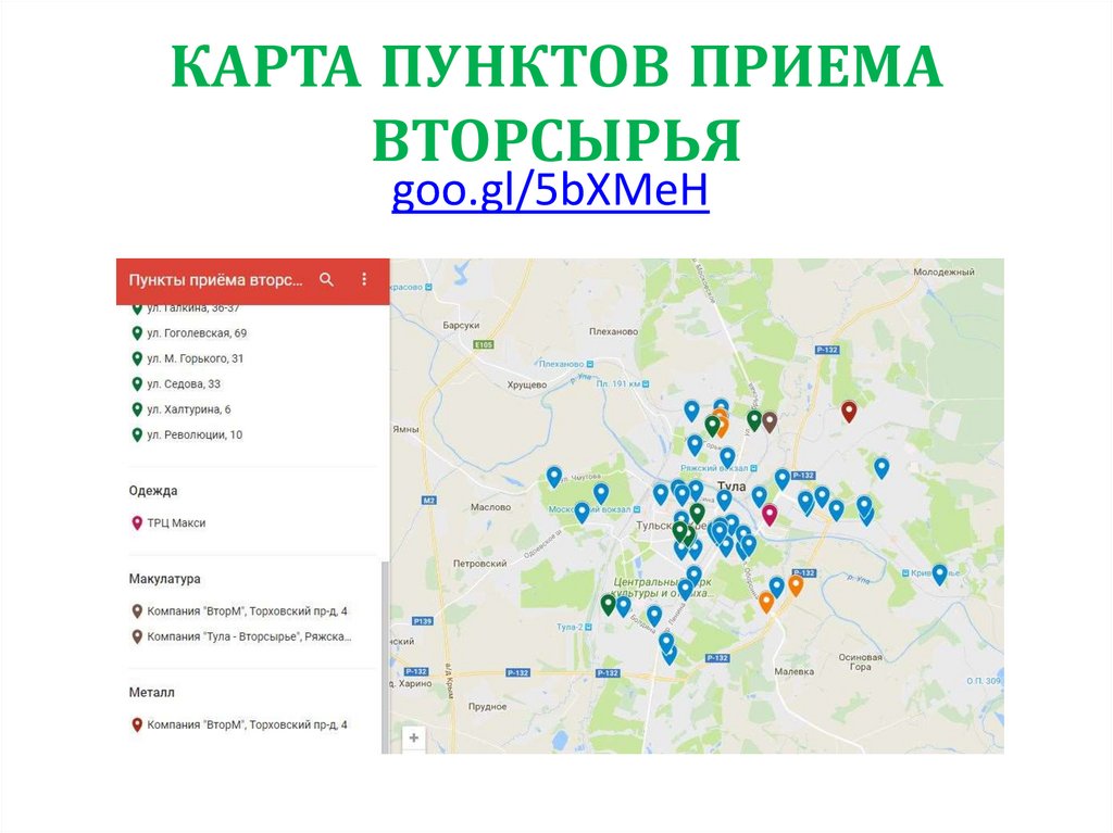 КАРТА ПУНКТОВ ПРИЕМАВТОРСЫРЬЯ