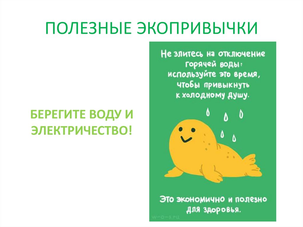 ПОЛЕЗНЫЕ ЭКОПРИВЫЧКИБЕРЕГИТЕ ВОДУ И