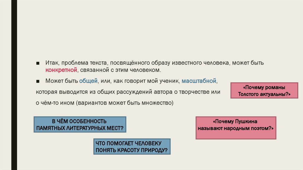 ■ Итак, проблема текста, посвящённого образу известного человека, может бытьконкретной, связанной с этим человеком.