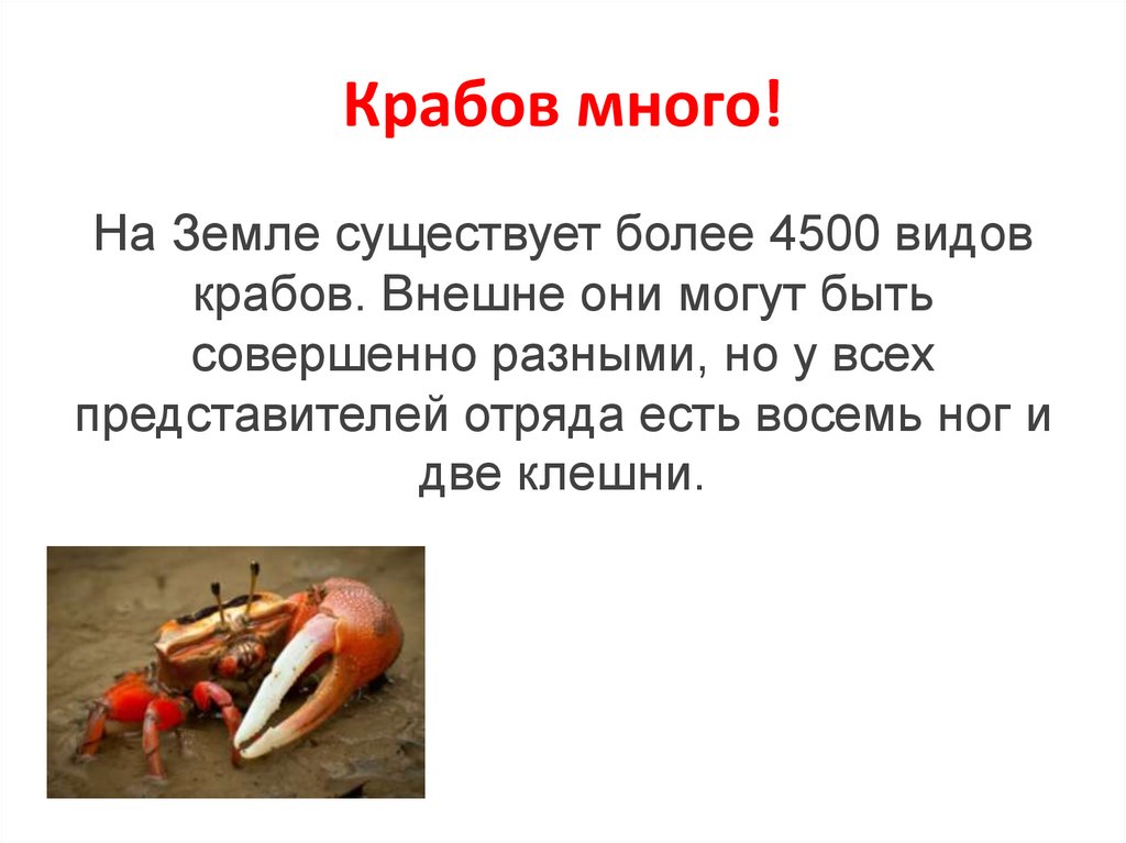 Крабов много!На Земле существует более 4500 видов