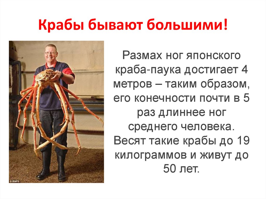 Крабы бывают большими!Размах ног японского