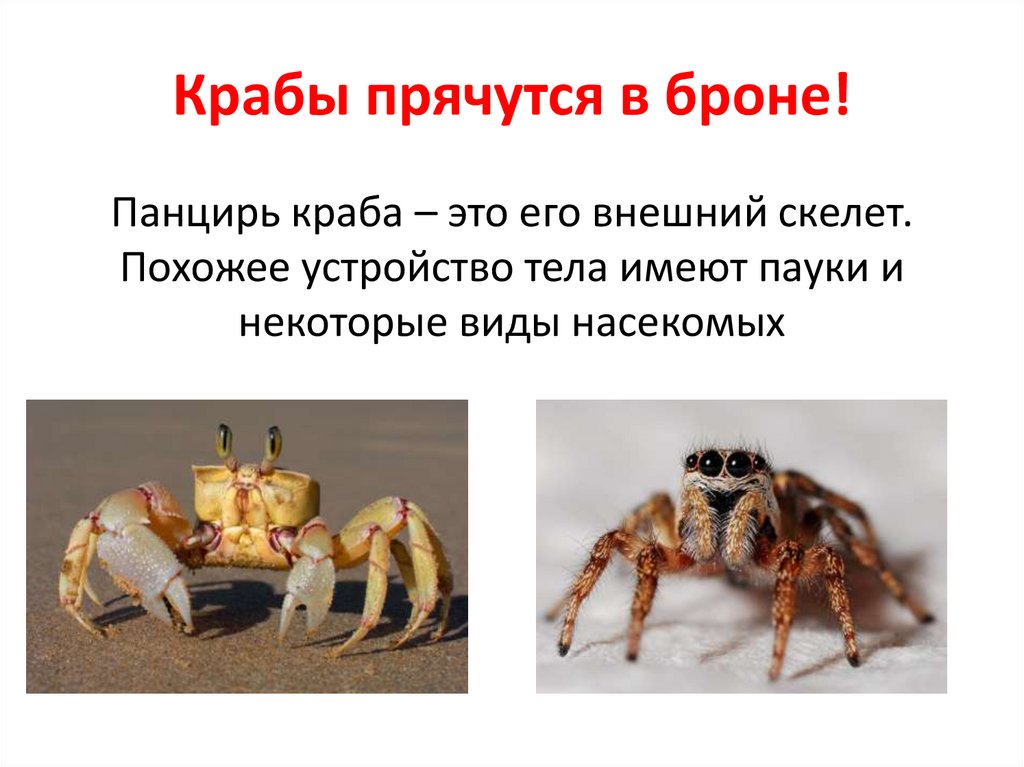 Крабы прячутся в броне!Панцирь краба – это его внешний скелет.