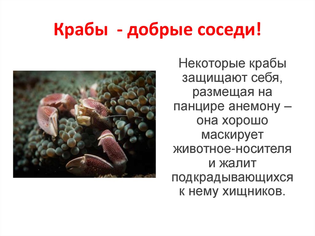 Крабы - добрые соседи!Некоторые крабы