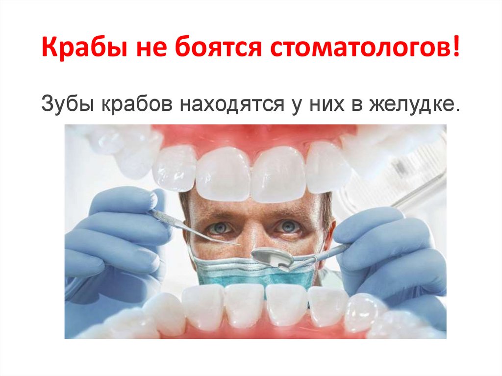 Крабы не боятся стоматологов!Зубы крабов находятся у них в желудке.