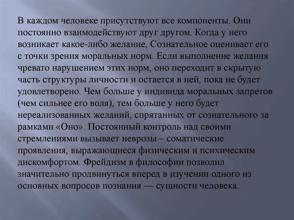 В каждом человеке присутствуют все компоненты. Онипостоянно взаимодействуют друг другом. Когда у него