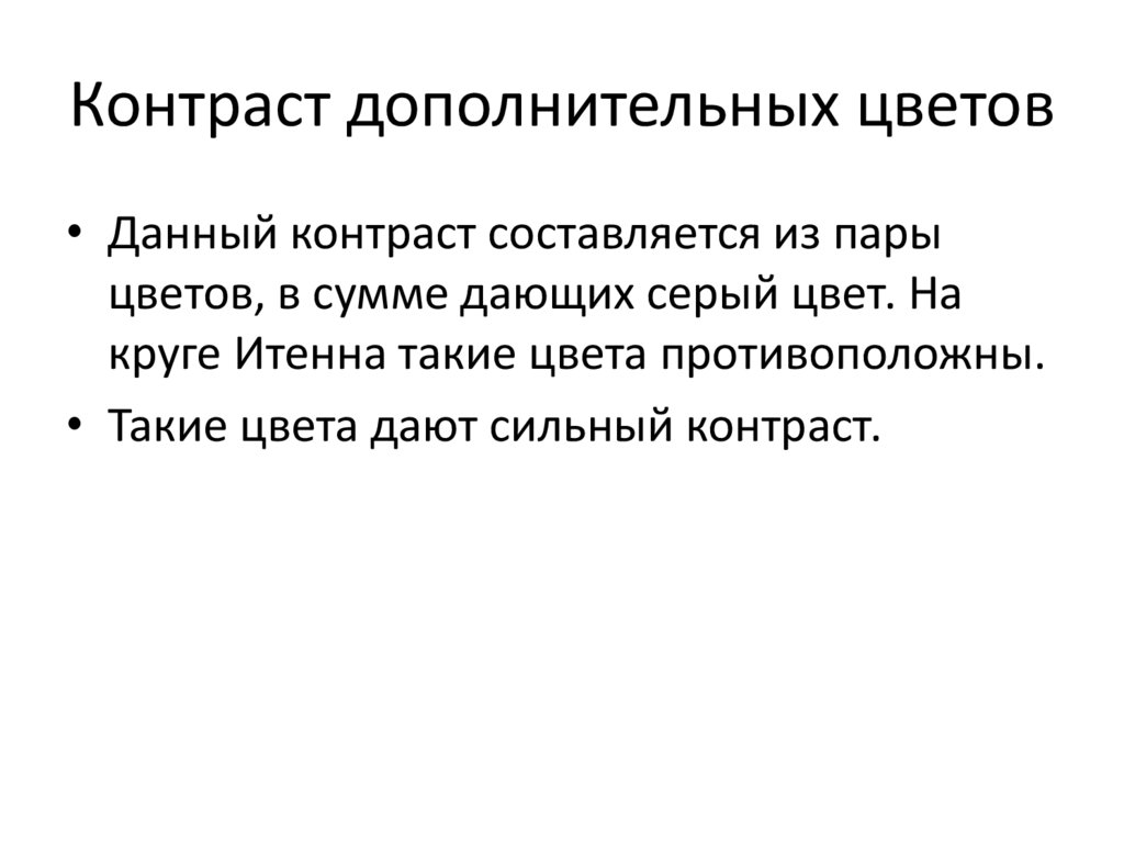 Контраст дополнительных цветов• Данный контраст составляется из пары