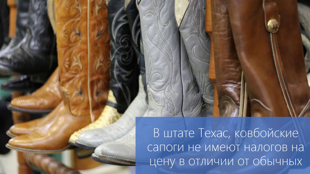 В штате Техас, ковбойскиесапоги не имеют налогов на