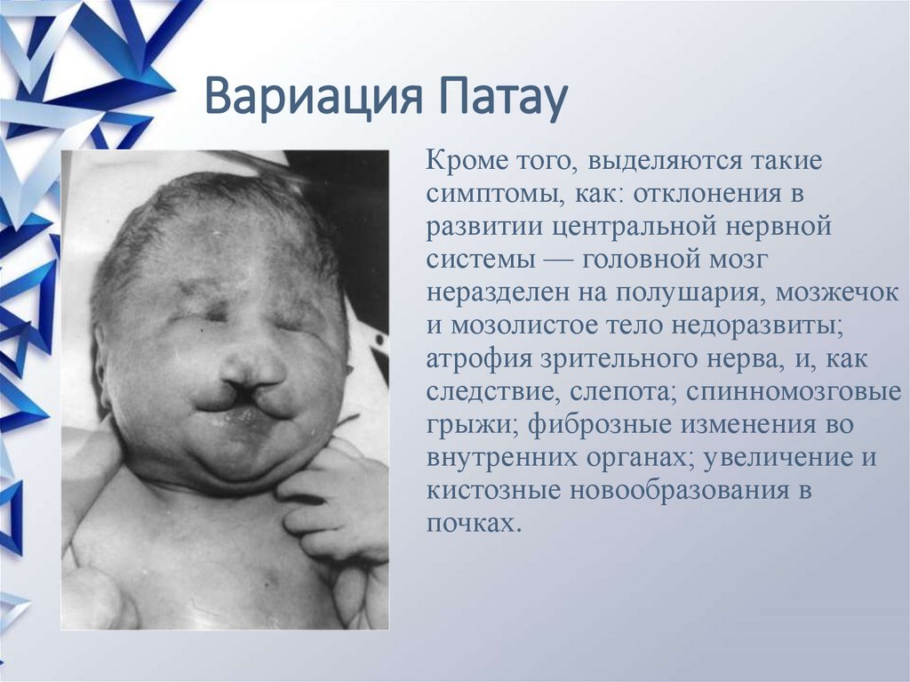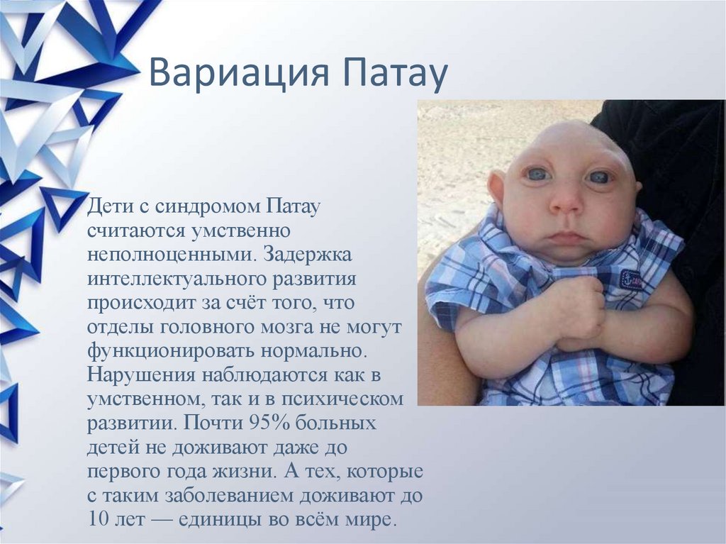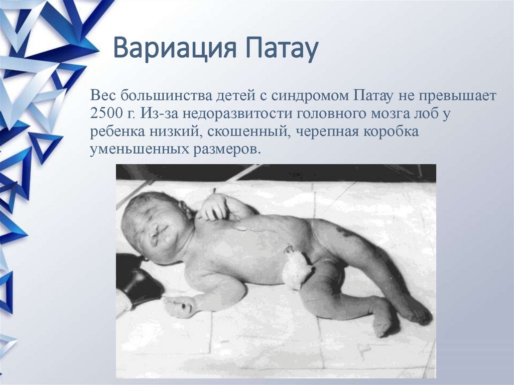 Вариация ПатауВес большинства детей с синдромом Патау не превышает