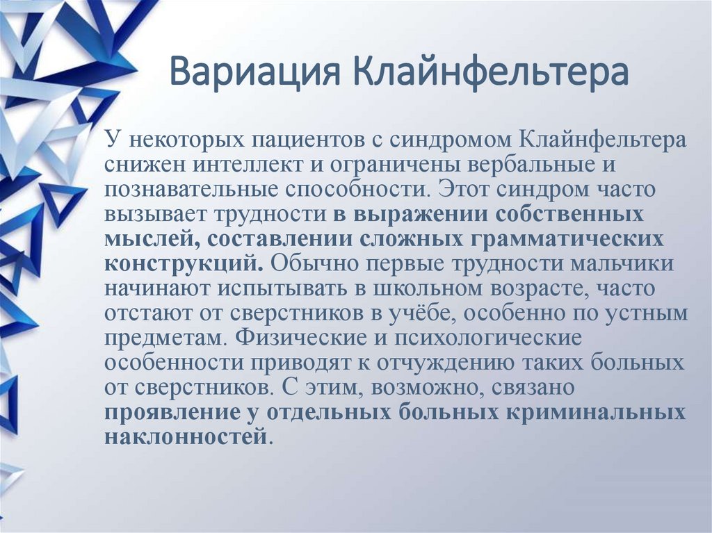 Вариация КлайнфельтераВ подростковом возрасте синдром