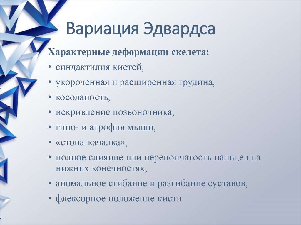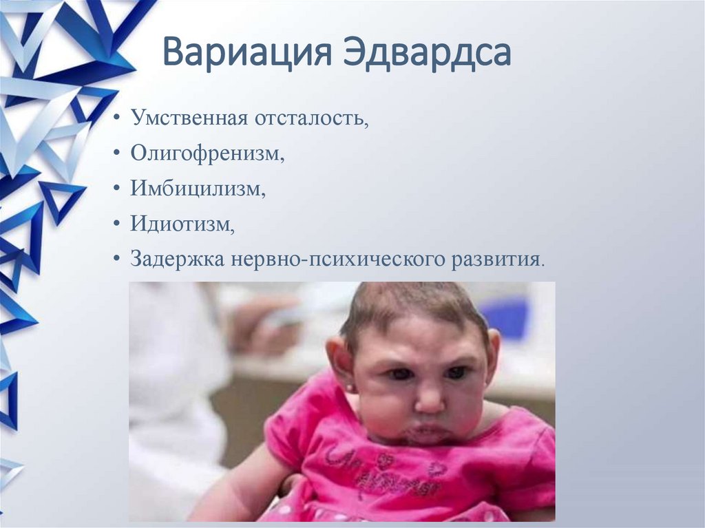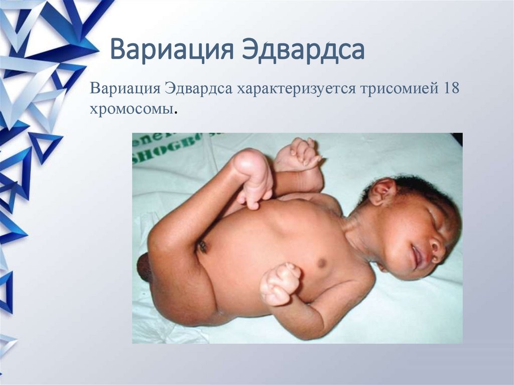 Вариация ЭдвардсаВариация Эдвардса характеризуется трисомией 18