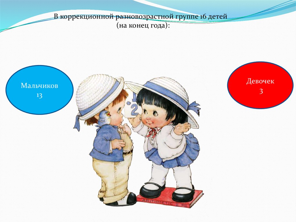 В коррекционной разновозрастной группе 16 детей(на конец года):