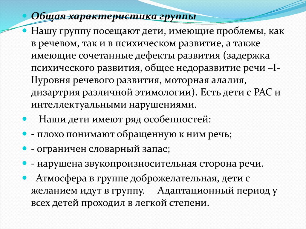 Общая характеристика группыНашу группу посещают дети, имеющие проблемы, как