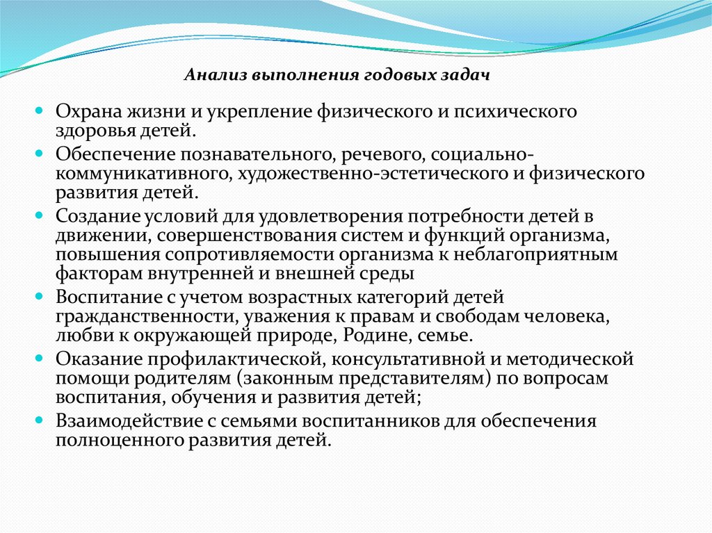 Анализ выполнения годовых задачОхрана жизни и укрепление физического и психического