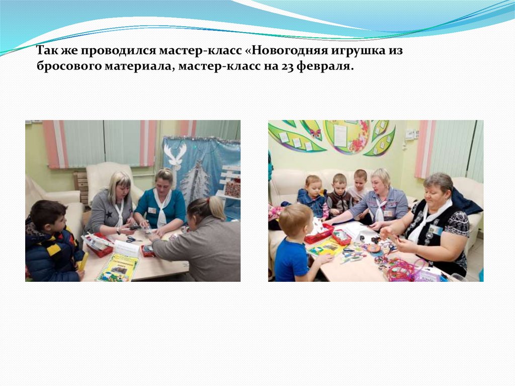 Так же проводился мастер-класс «Новогодняя игрушка избросового материала, мастер-класс на 23 февраля.