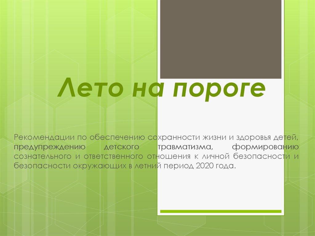 Лето на порогеРекомендации по обеспечению сохранности жизни и здоровья детей,
