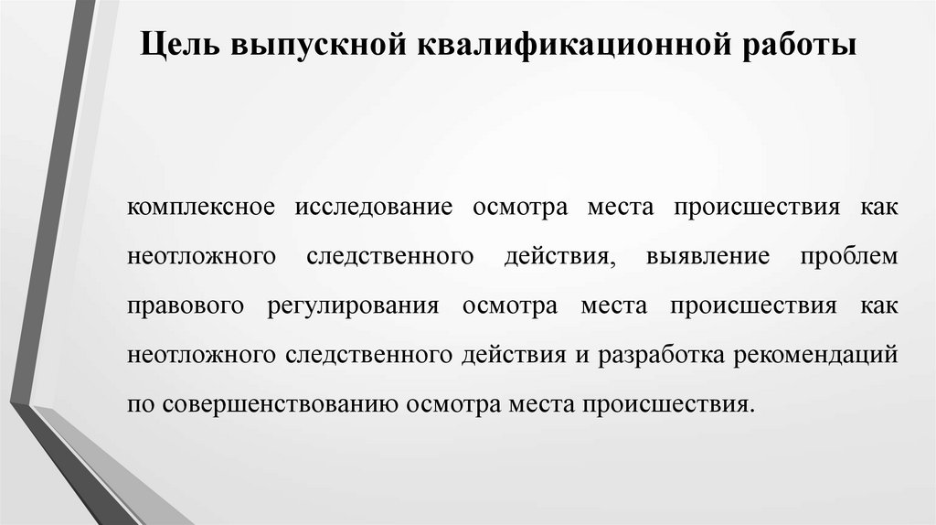 Цель выпускной квалификационной работыкомплексное исследование осмотра места происшествия как
