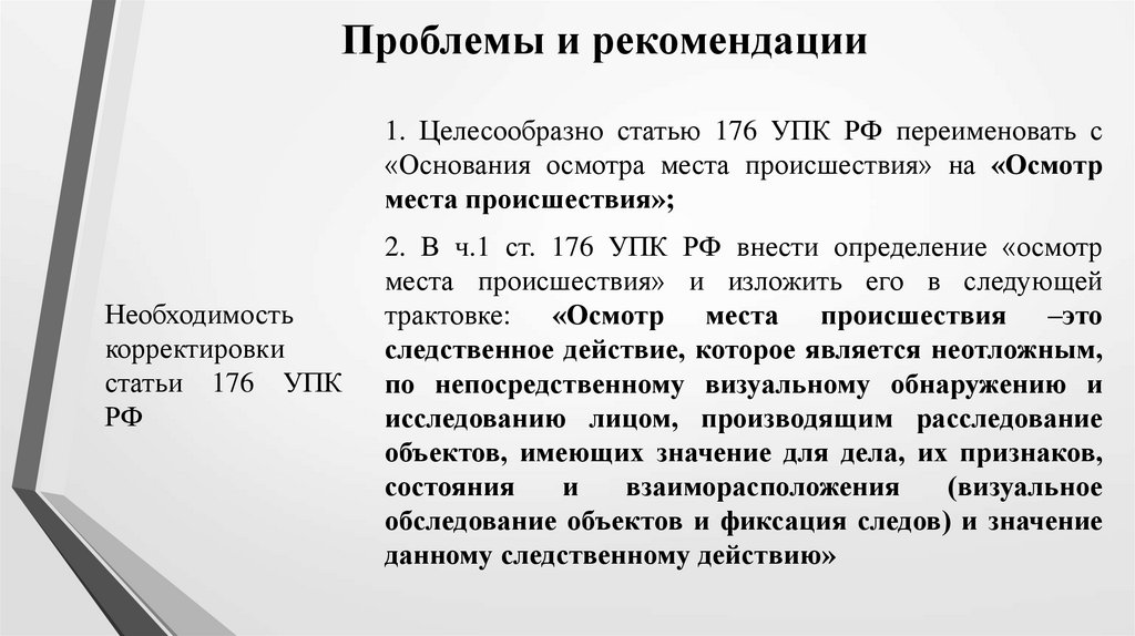 2. В ч.1 ст. 176 УПК РФ внести определение «осмотр