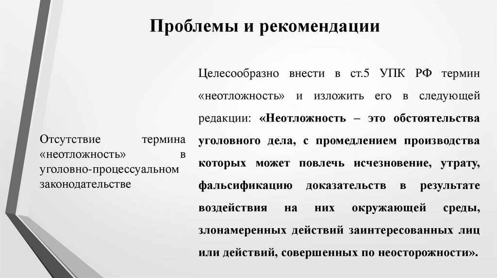 Проблемы и рекомендацииЦелесообразно внести в ст.5 УПК РФ термин