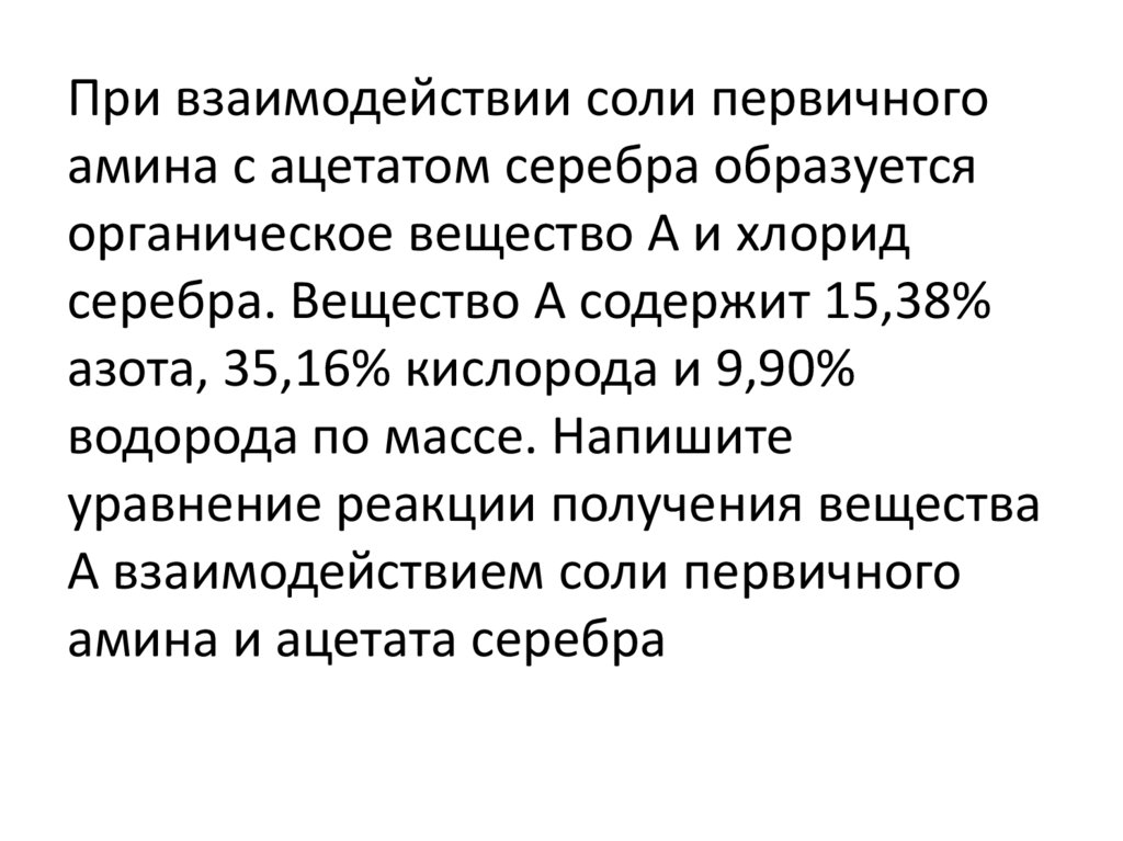 При взаимодействии соли первичногоамина с ацетатом серебра образуется