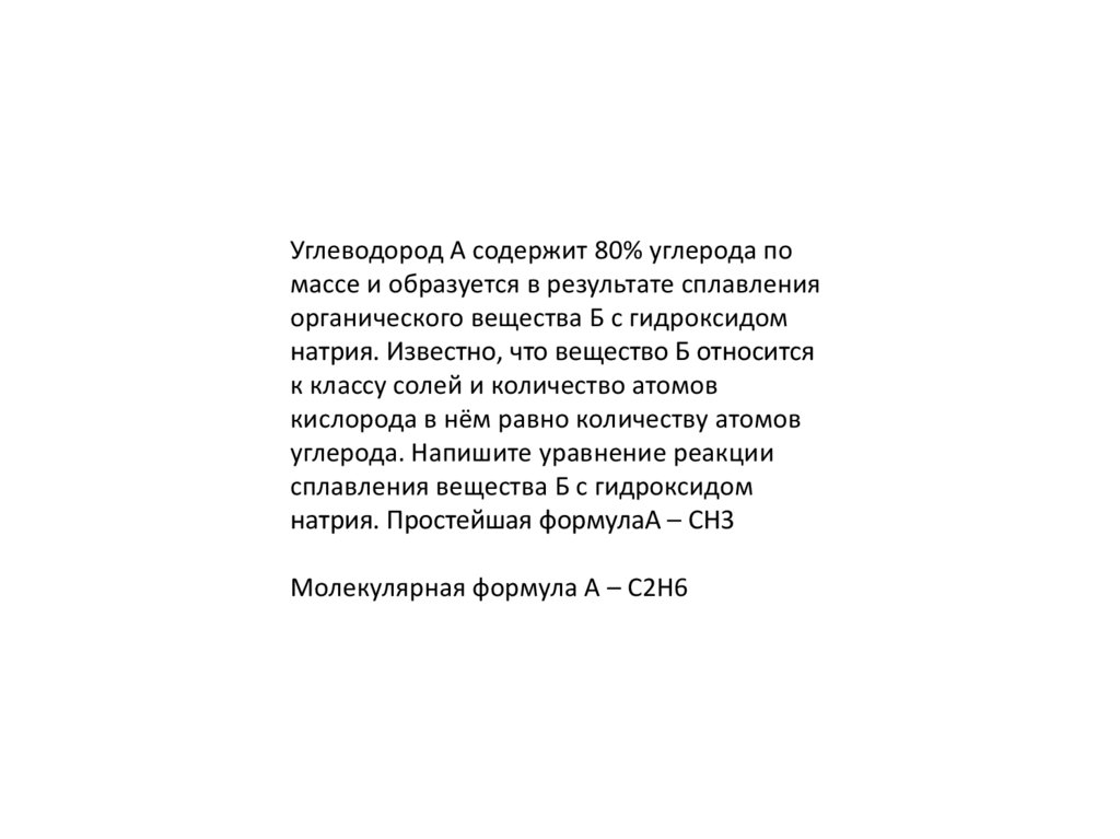 Углеводород А содержит 80% углерода помассе и образуется в результате сплавления