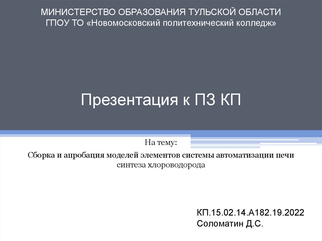 МИНИСТЕРСТВО ОБРАЗОВАНИЯ ТУЛЬСКОЙ ОБЛАСТИГПОУ ТО «Новомосковский политехнический колледж»