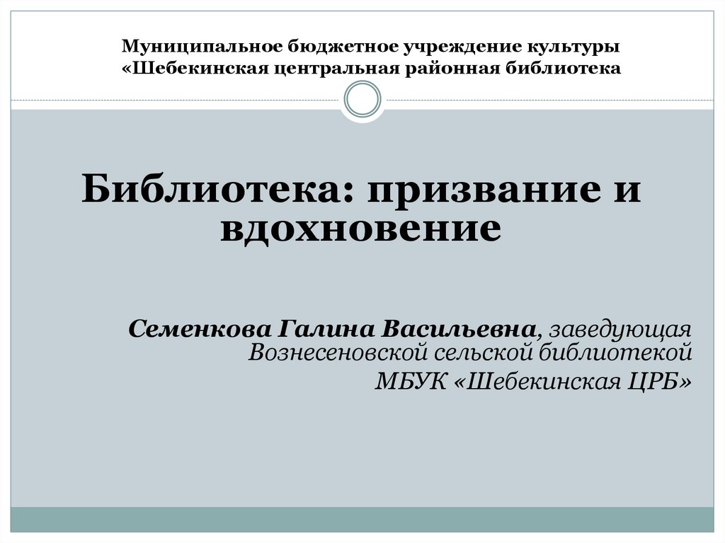 Муниципальное бюджетное учреждение культуры«Шебекинская центральная районная библиотека
