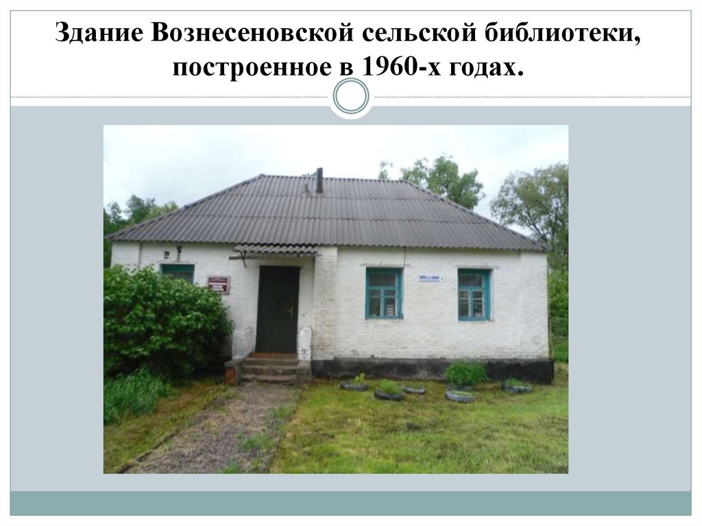 Здание Вознесеновской сельской библиотеки,построенное в 1960-х годах.