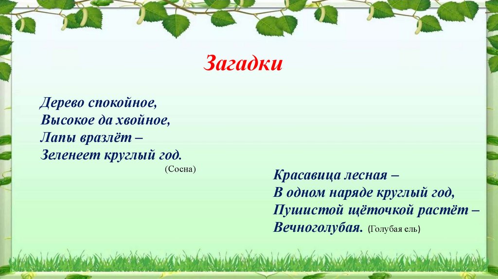 ЗагадкиДерево спокойное,