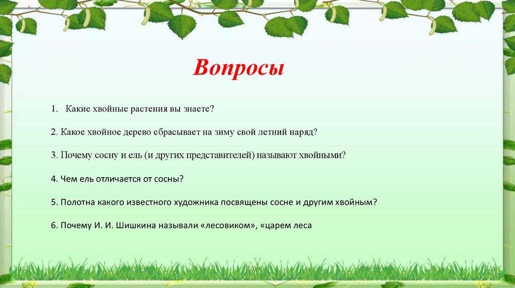 Вопросы1. Какие хвойные растения вы знаете?