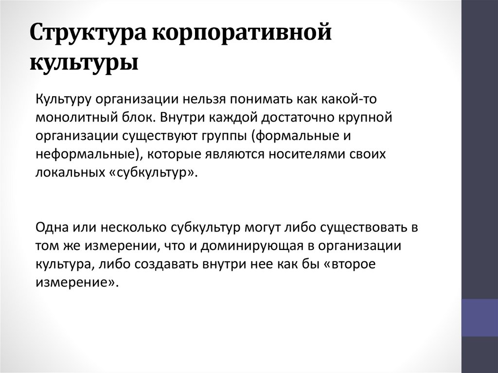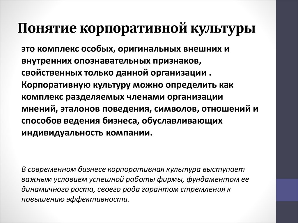 Понятие корпоративной культурыэто комплекс особых, оригинальных внешних и
