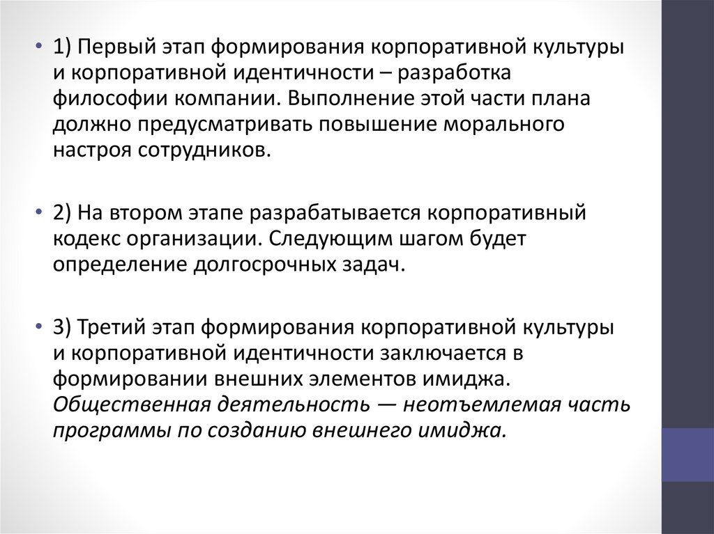 • 1) Первый этап формирования корпоративной культурыи корпоративной идентичности – разработка