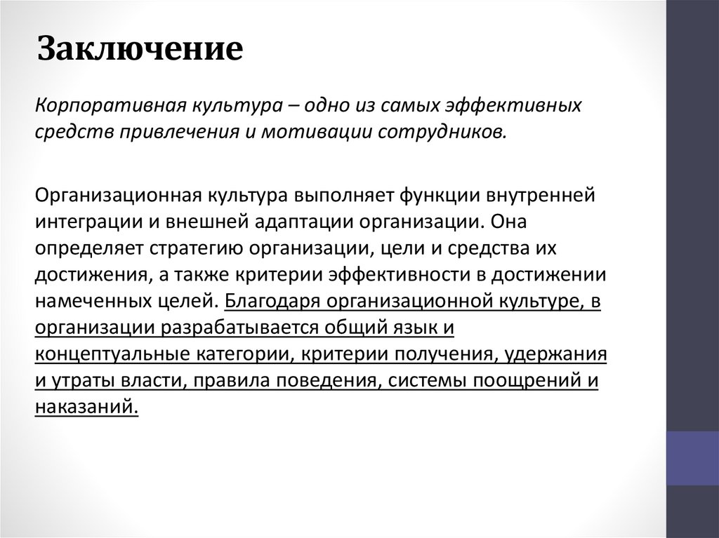 ЗаключениеКорпоративная культура – одно из самых эффективных