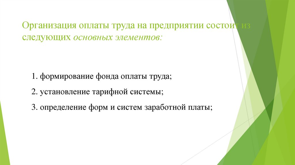 Организация оплаты труда на предприятии состоит изследующих основных элементов: