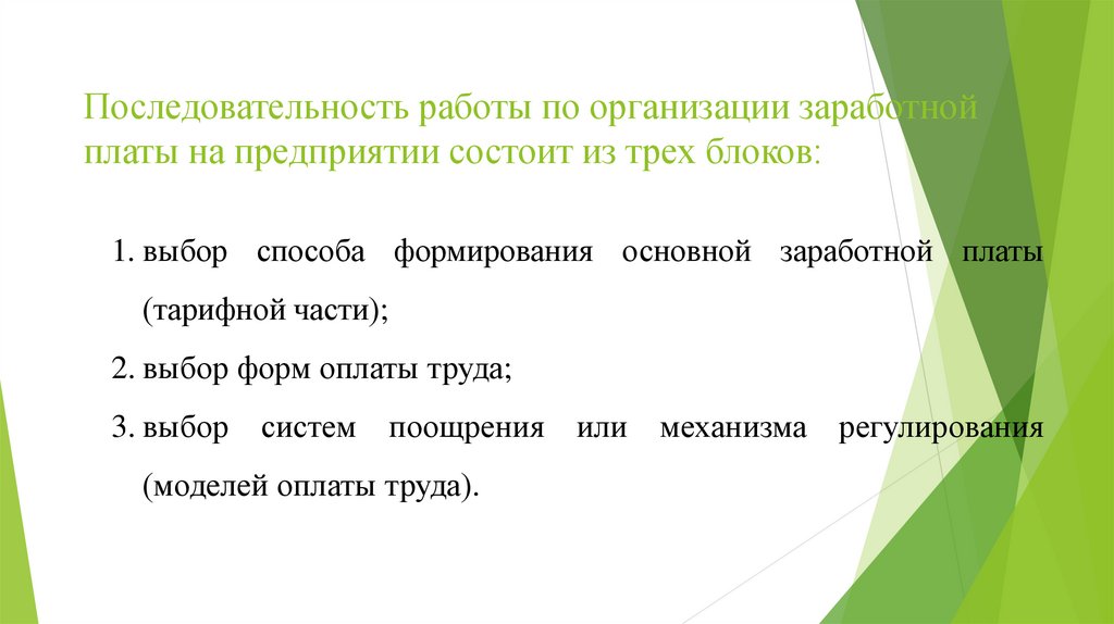 Последовательность работы по организации заработнойплаты на предприятии состоит из трех блоков: