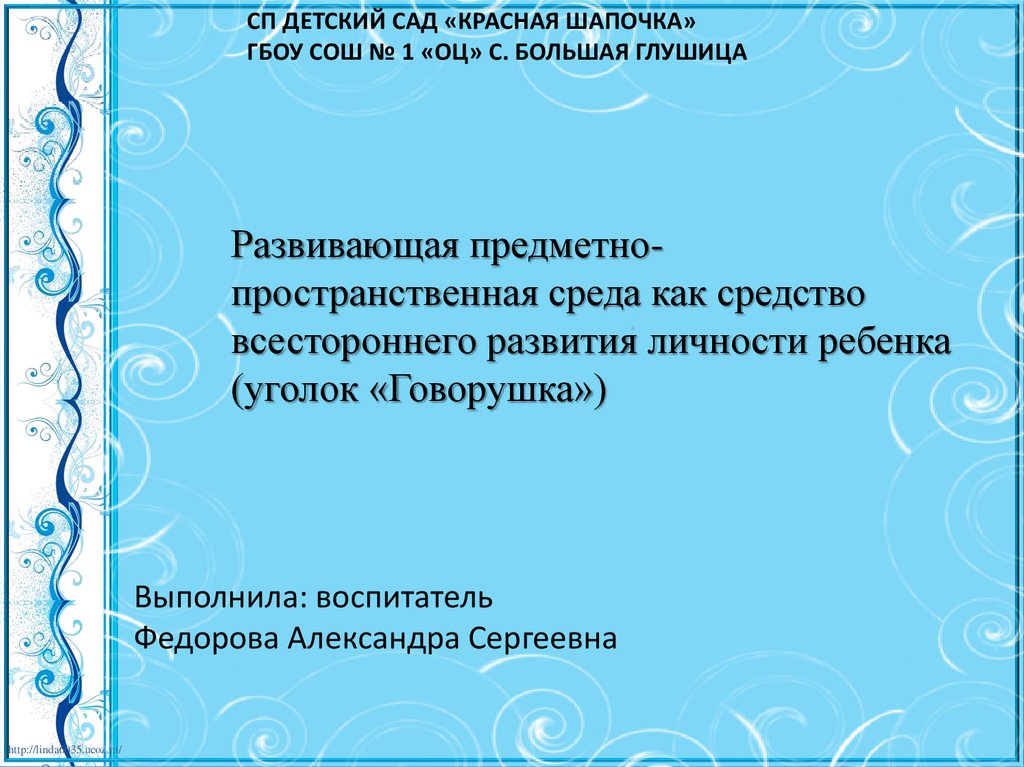 СП ДЕТСКИЙ САД «КРАСНАЯ ШАПОЧКА»ГБОУ СОШ № 1 «ОЦ» С. БОЛЬШАЯ ГЛУШИЦА