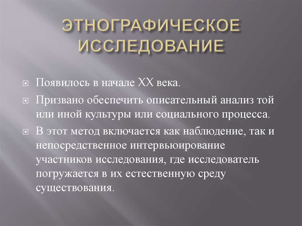 Появилось в начале XX века.Призвано обеспечить описательный анализ той