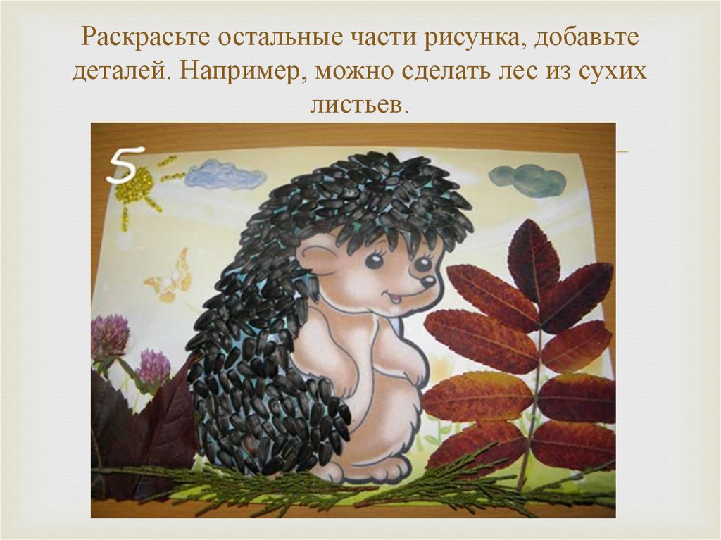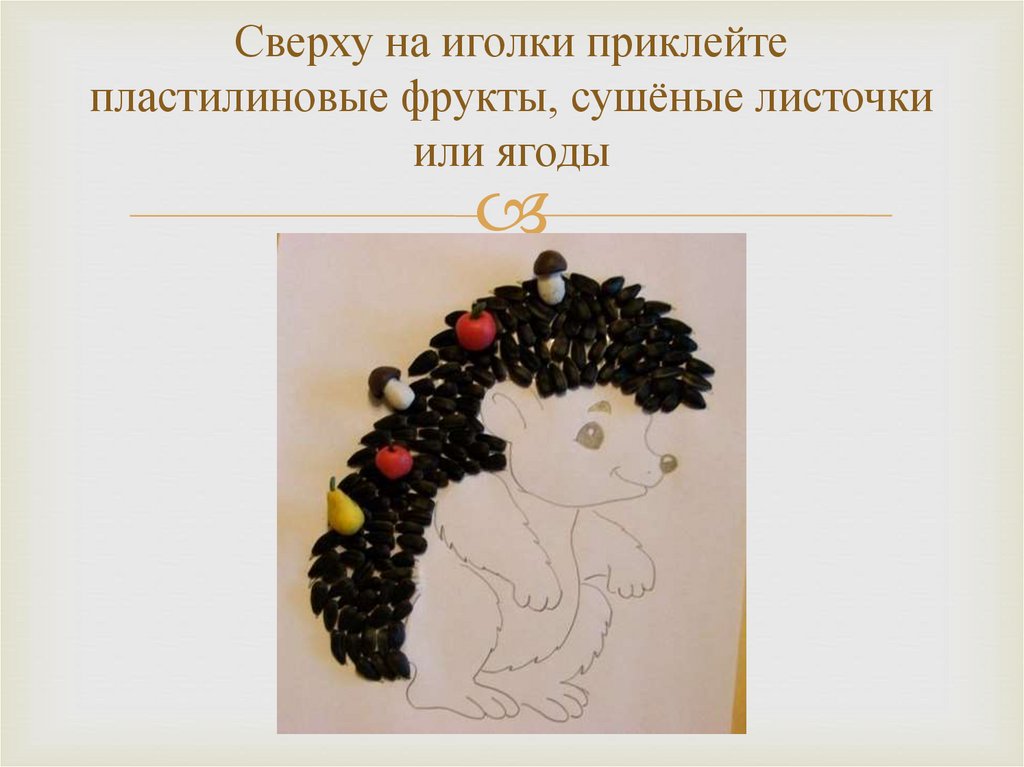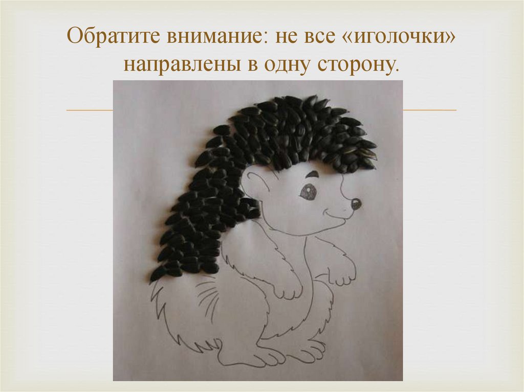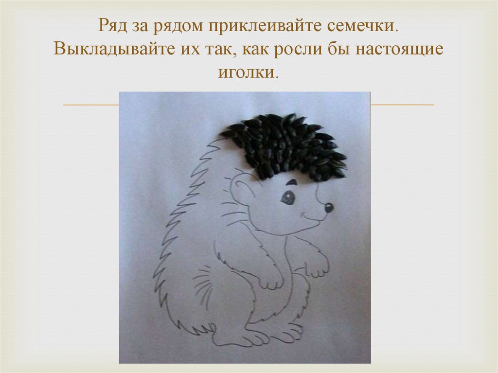 Ряд за рядом приклеивайте семечки.Выкладывайте их так, как росли бы настоящие