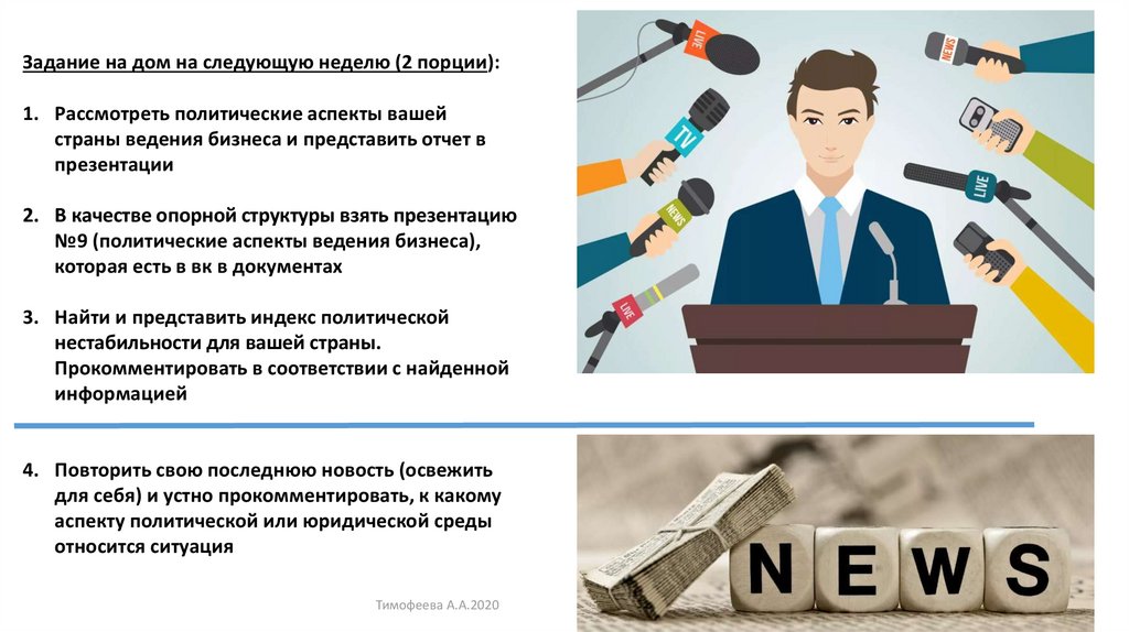 Задание на дом на следующую неделю (2 порции):1. Рассмотреть политические аспекты вашей