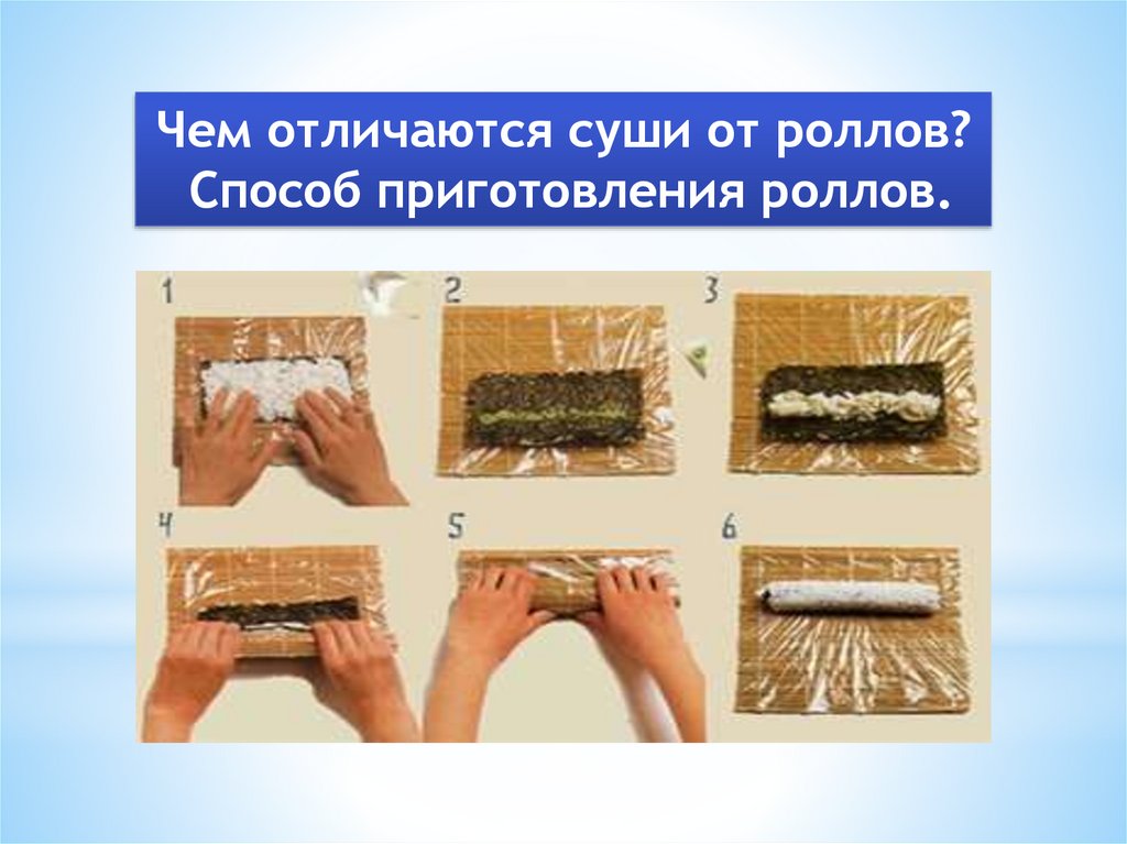 Чем отличаются суши от роллов?Способ приготовления роллов.