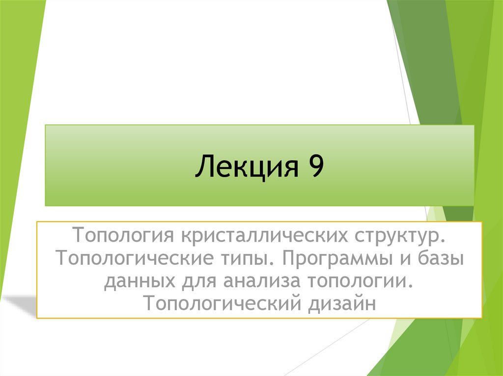 Топология кристаллических структур. Топологические типы. Программы и базы данных для анализа топологии. Лекция 9