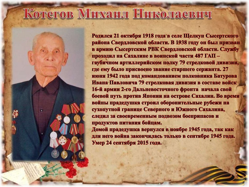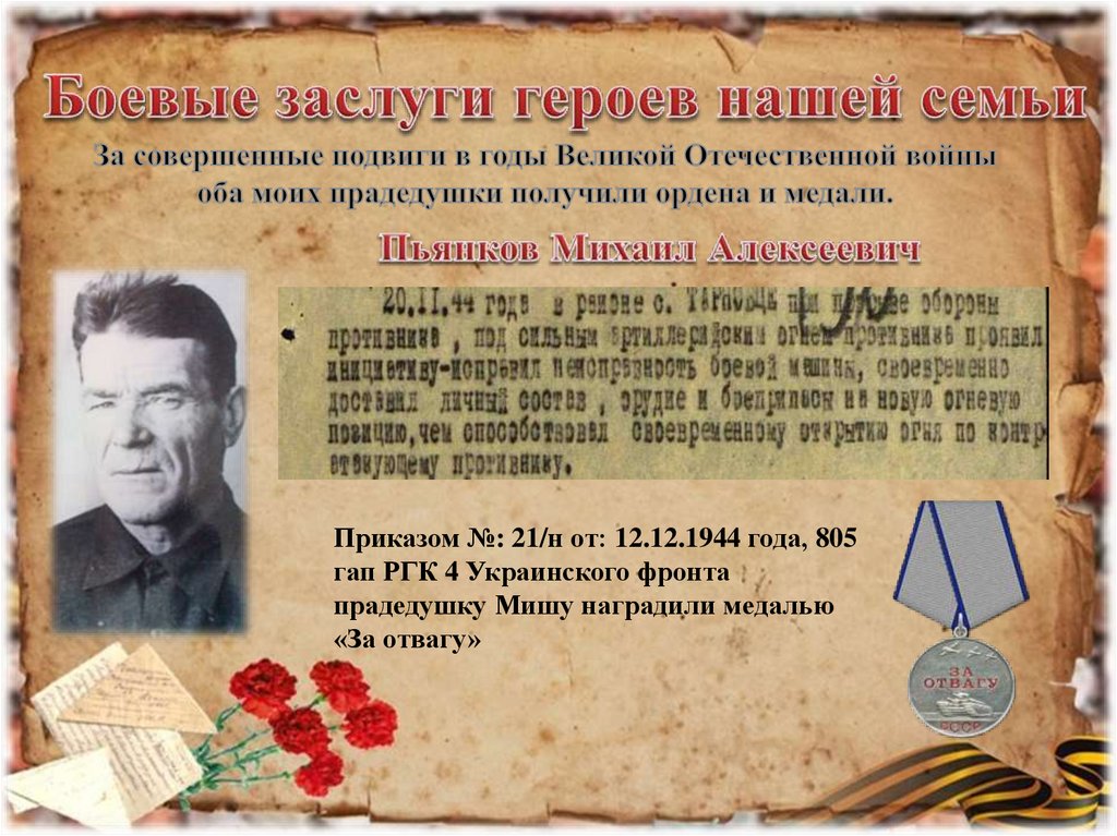 прадедушку Мишу наградили медалью